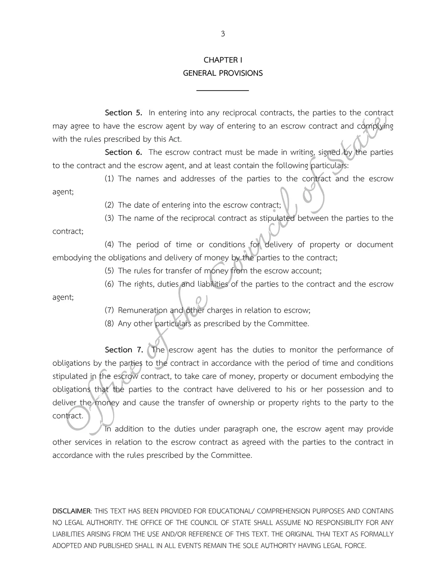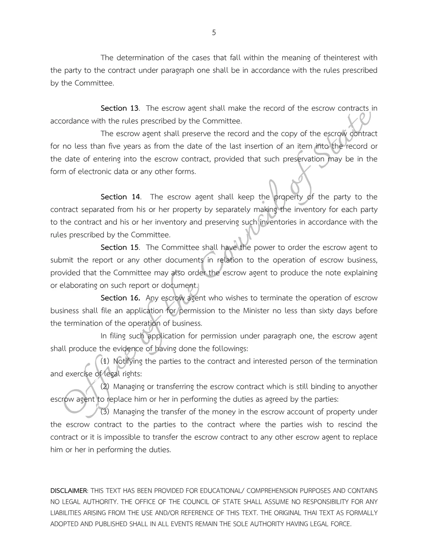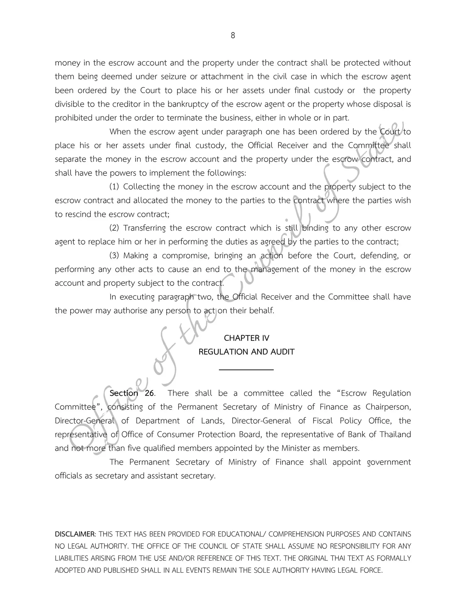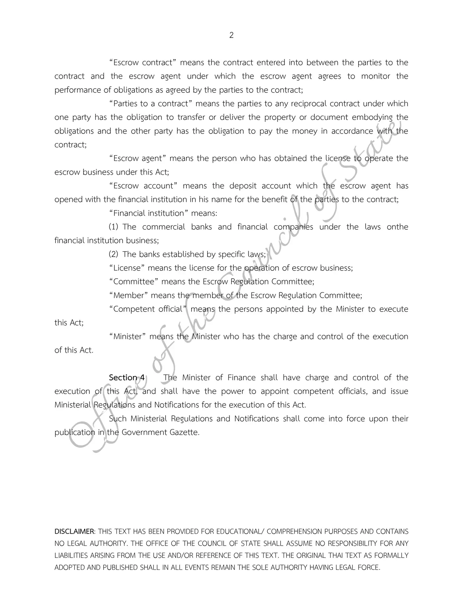 – Escrow Act B.E. 2551