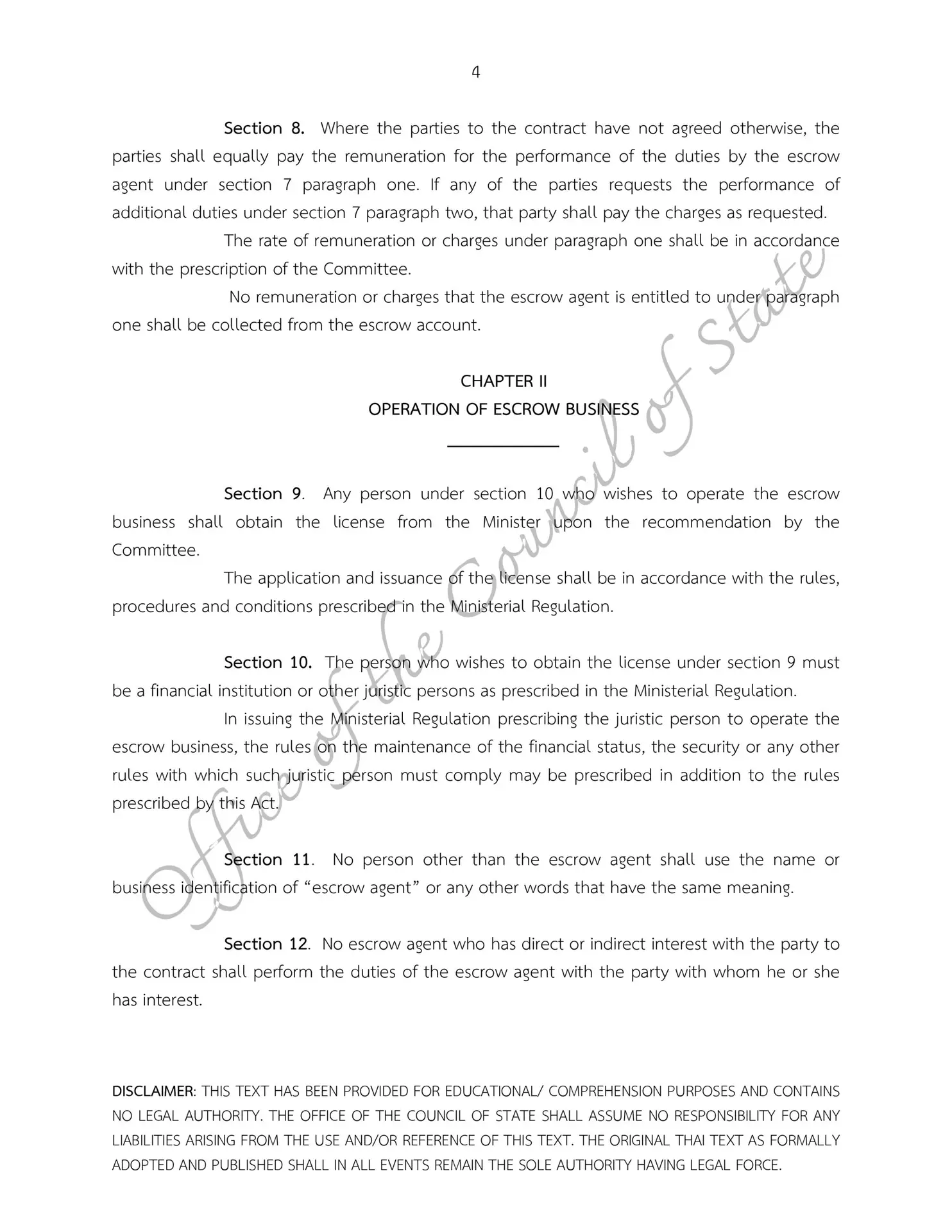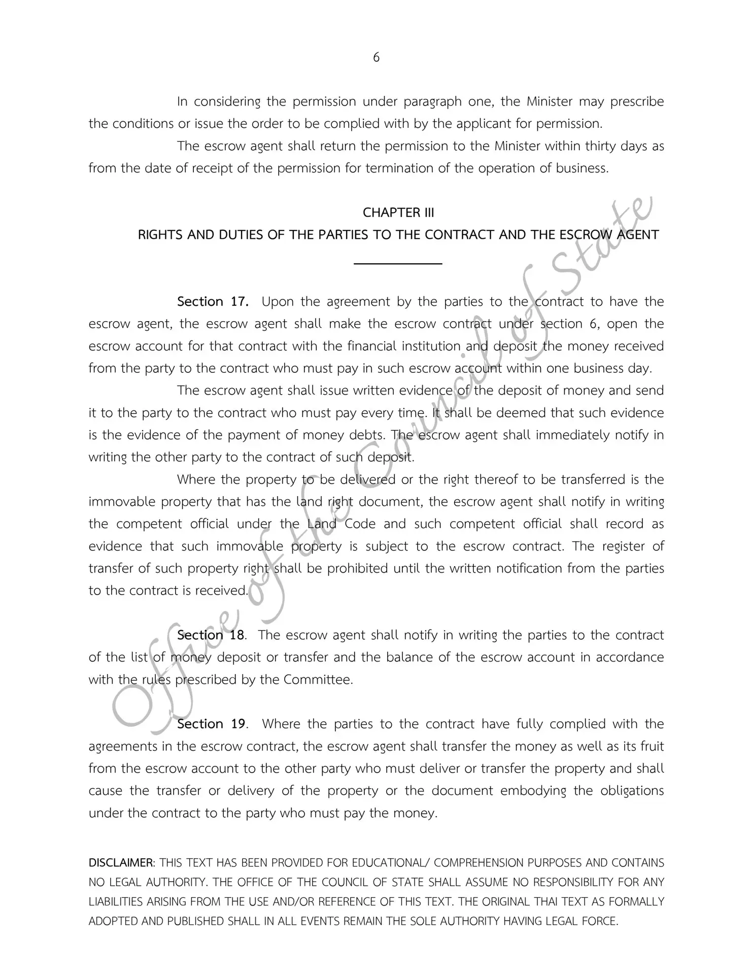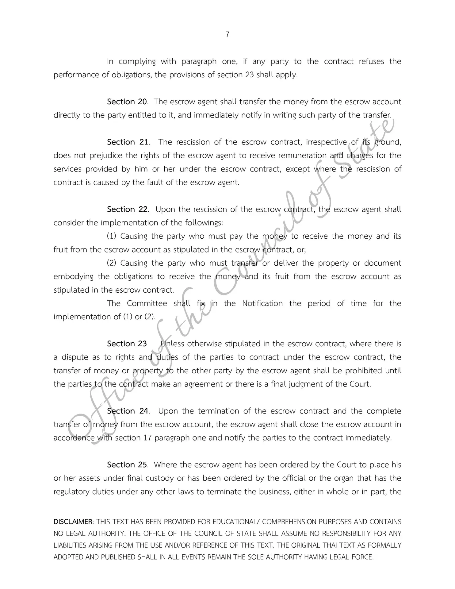 – Escrow Act B.E. 2551