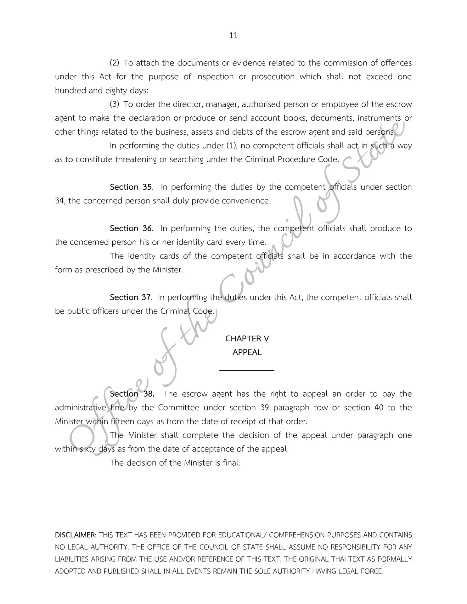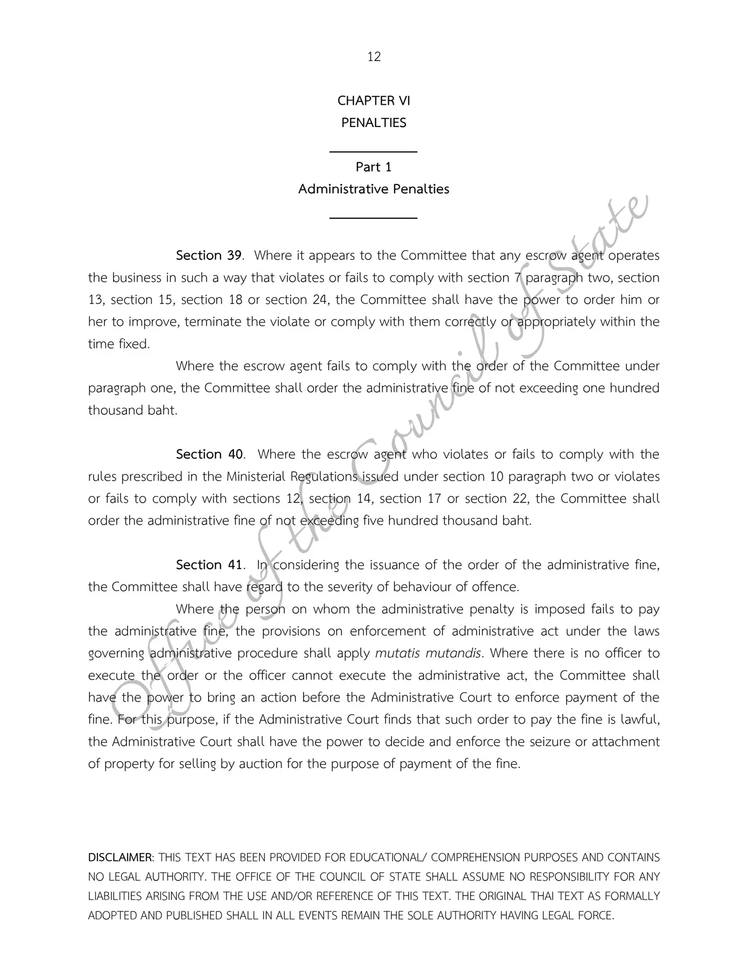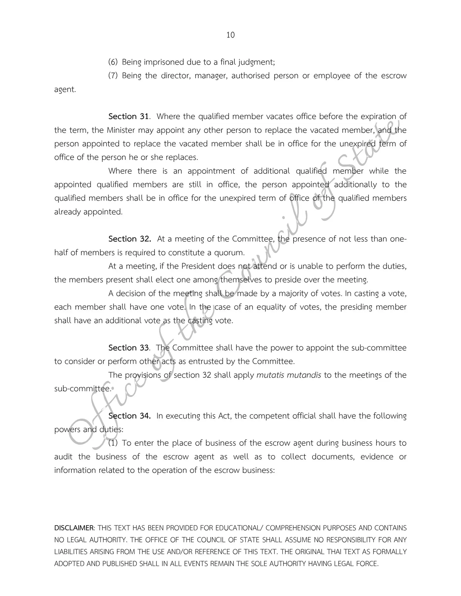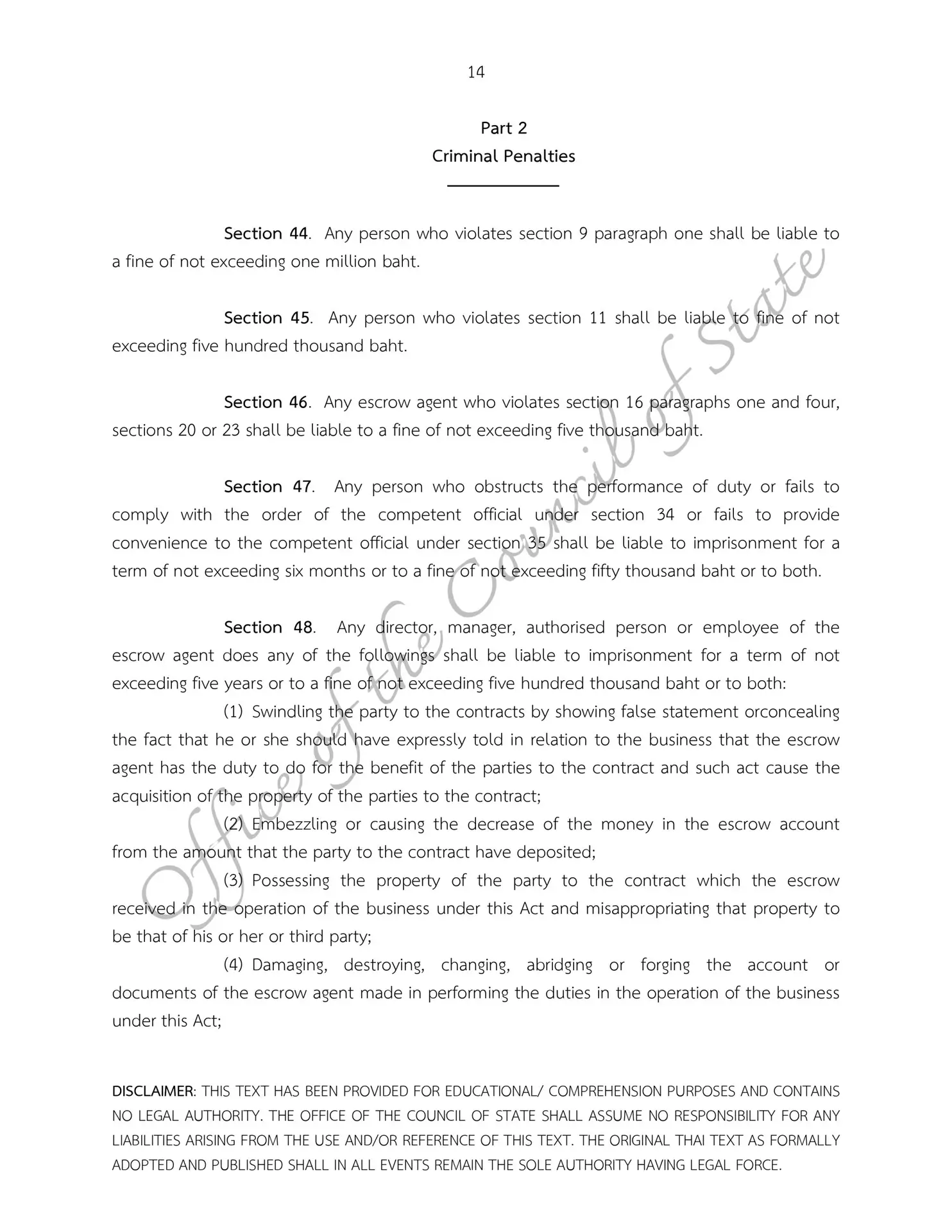 – Escrow Act B.E. 2551
